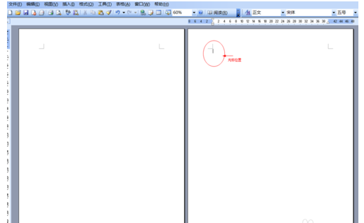 1.首先打开Word2003,即可开始编辑文档,当第一页编辑完成时,鼠标光标会定位在第二页上面(如图1)。