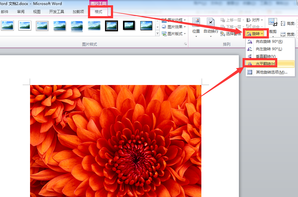 要在word里对图片进行水平翻转,以word2010为例,方法如下: