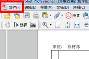 4、打开PDF文档后,您可以在菜单“文件”的左上角看到该文档,单击该文件。