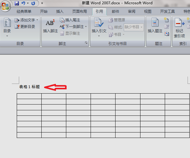 例如在这个表格上面加标题,但没有段落标记,无法添加,可通过下面的方法来实现。