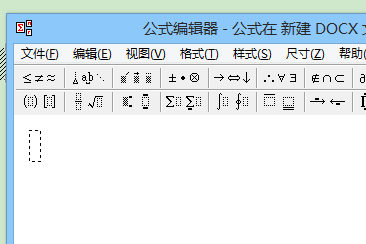 选中双击了以后,公式编辑器就会进入到修改编辑状态,这个时候,可以看到,word窗口的菜单变了。现在,如上图一样,执行菜单操作:“尺寸”→“定义”。弹出如下图的对话框。