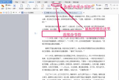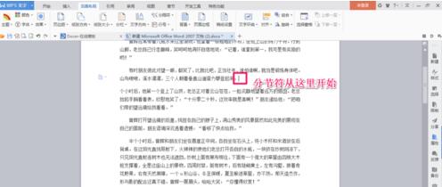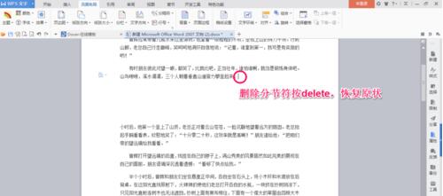 5,要想取消人工创建的分节,将插入点光标放置在该节的末尾,按delete键删除分节符即可