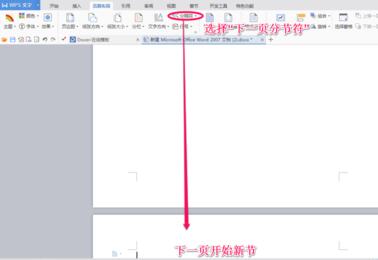 “下一页”:是指插入一个分节符后,新节从下一页开始。