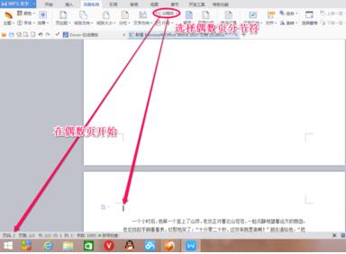 (3)偶数页:插入分节符并在下一偶数页上开始新节;