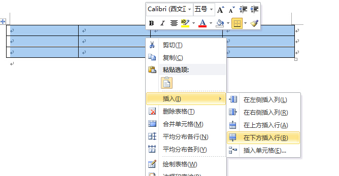 word插入行命令是选定多少行就插入多少行,所以可如下操作: