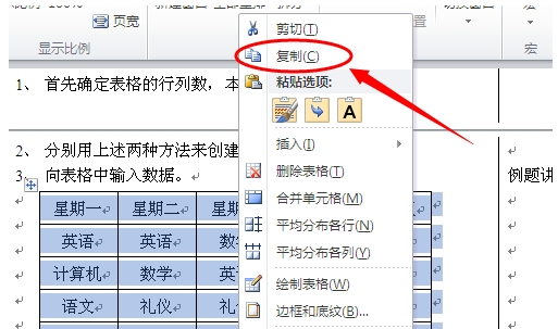 3、然后在表格中任意位置右键单击,在快捷菜单中选择“复制”。