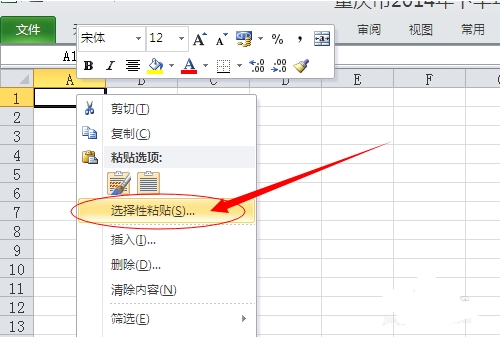 4、打开excel文档,然后在单元上右键单击,在快捷菜单中选择“选择性粘贴”。