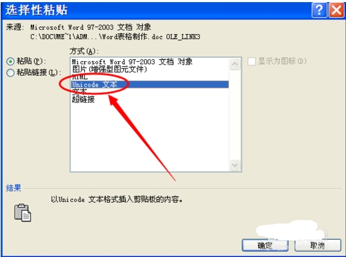 5、在“选择性粘贴”对话框中,粘贴方式选择“文本”。