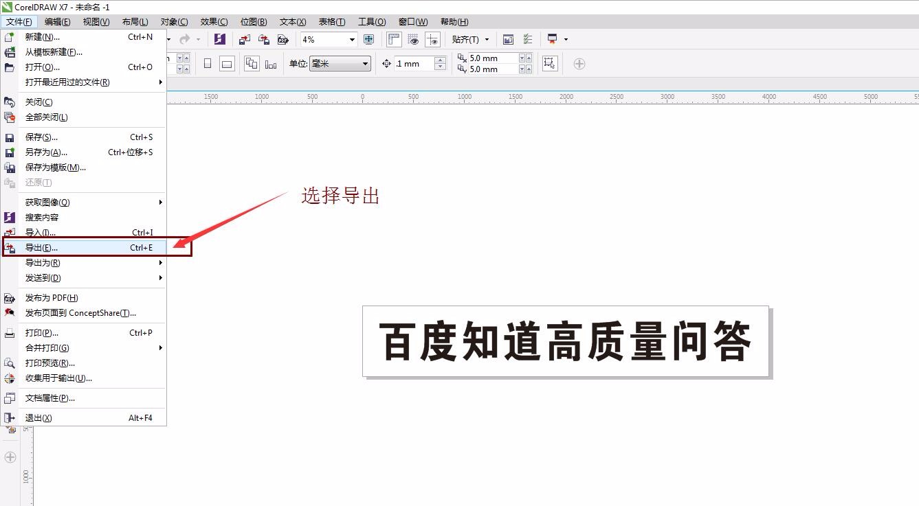 1、在CorelDRAW中将条幅版面排好后点击文件菜单-导出。