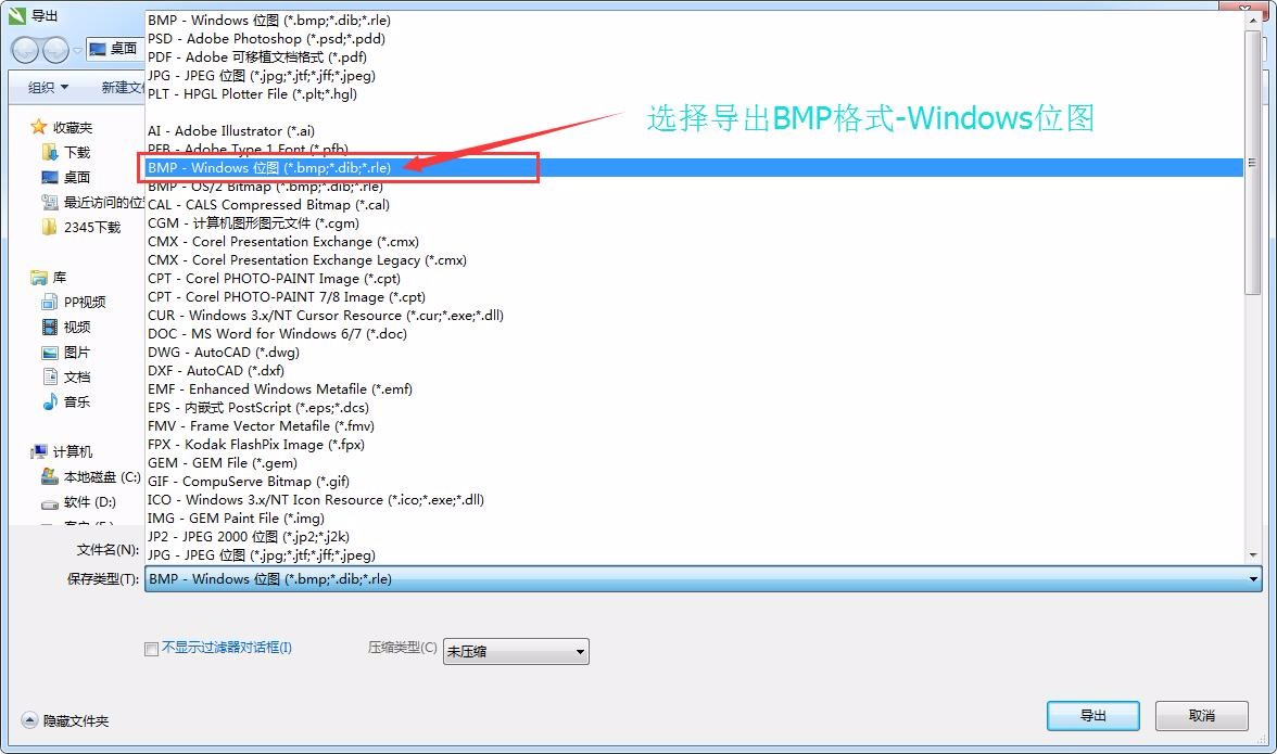 2、将导出的格式设置为BMP格式-Windows位图。