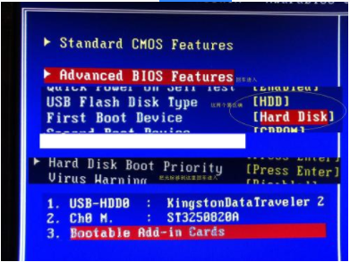 Phoenix -Award的BIOS调整选项为USB-HDD: