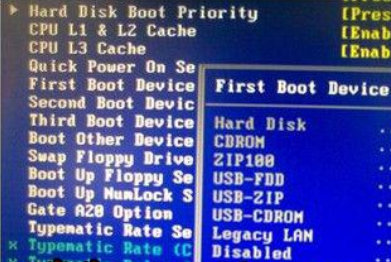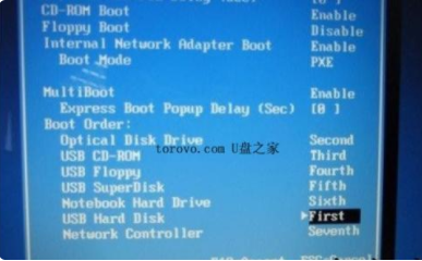 如果是老式BIOS,那必须按Del或F2等进入BIOS,然后在Advanced BIOS Features项目下,或者Boot,或者Startup下,找到First Boot Device或1st Boot Device等,进入后把USB-HDD或U盘名称设为第一启动,
