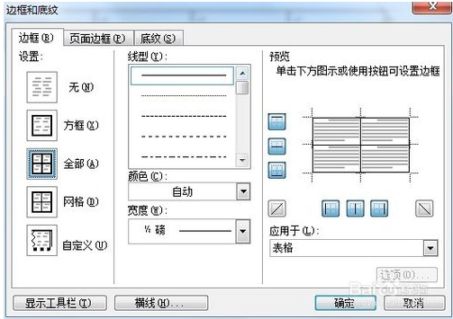 1、选中表格,右键,选择表格属性,选择边框和底纹