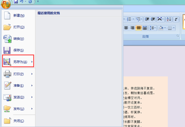 二、弹出的菜单内鼠标移到“另存为”。