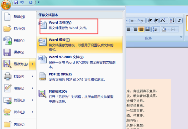 三、接着点击“Word 文档”,把此文档另存一个文档。