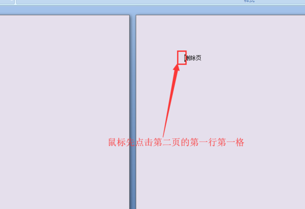 四、打开另存的文档,这里以仅保留第一页为例,首先鼠标点击第二页第一行第一格。