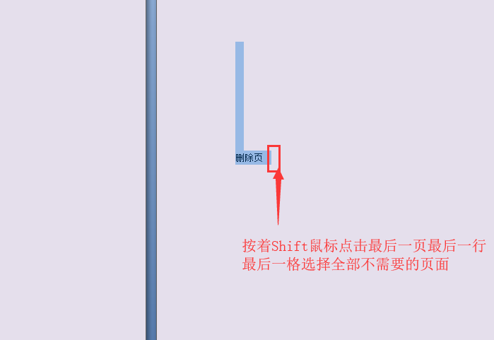 五、接着滚动鼠标滚轮至最后一页,然后按下Shift键,鼠标点击最后一页最后一行最后一格,这时就能够把第二页至最后一页全选。
