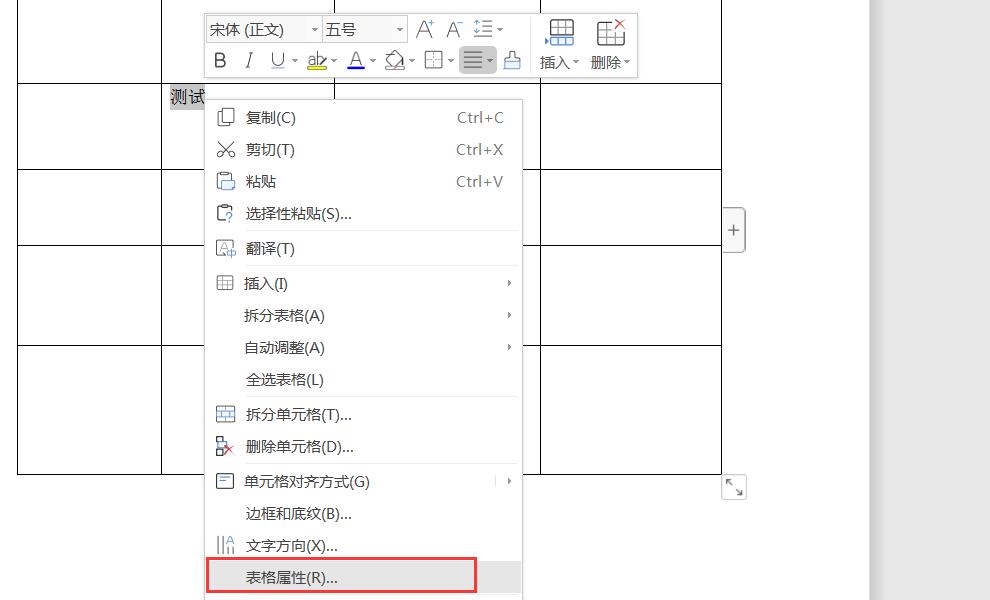 2、对选中的文字击右键,选择“表格属性”菜单;