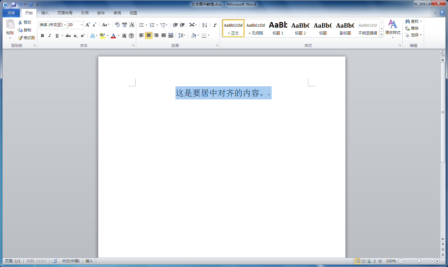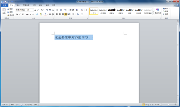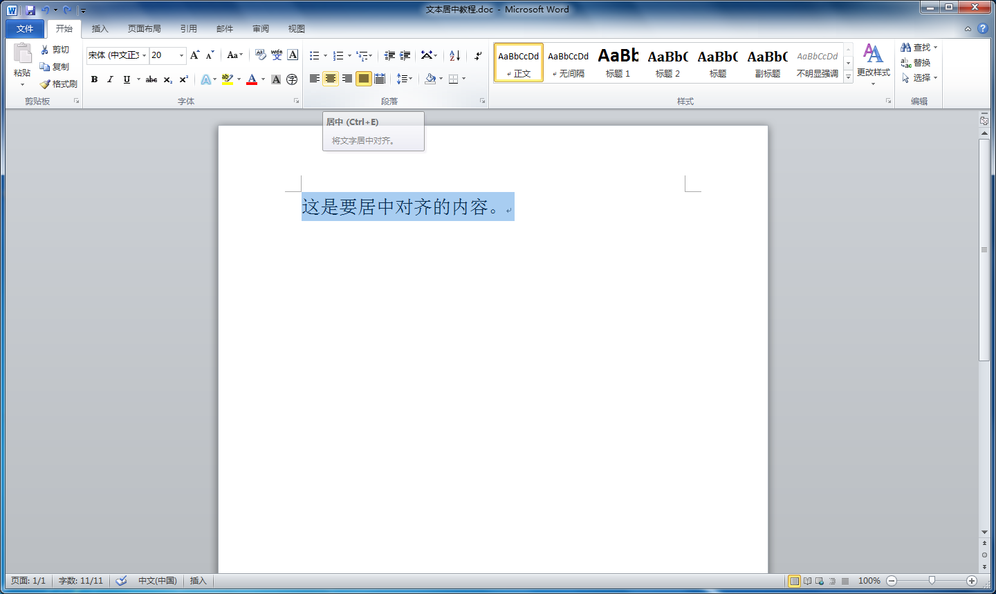 2.鼠标左键选中要居中的文本,点击居中按钮(快捷键是Ctrl+E)。