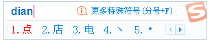 1、从键盘上输入:dian,输入法工具栏上显示: