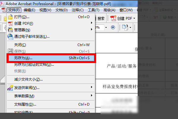 3、在往下弹出的菜单选项中点击另存为。