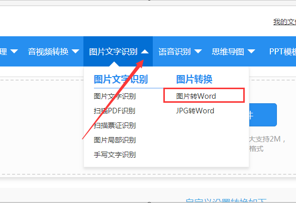 2、在进入首页后打开图片文字识别中的图片转Word选项进入图片转Word界面。
