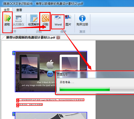 4、选中每一页图片——单击“识别”或"word";