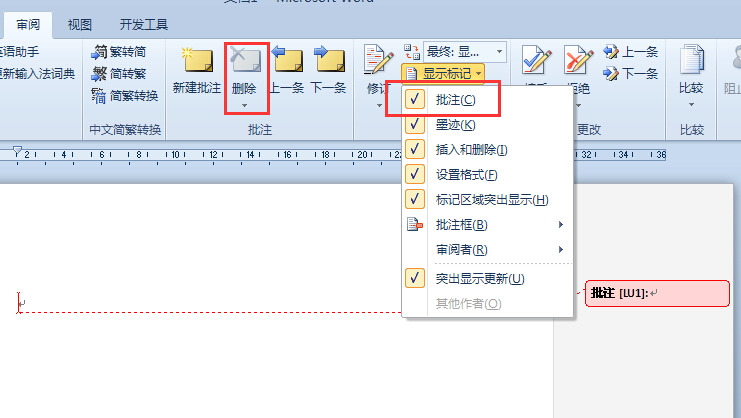 要消除标记,请使用“审阅”选项卡的“更改”组中的“接受”或“拒绝”按钮,或者在文档中单击鼠标右键以接受或拒绝更改并删除批注。