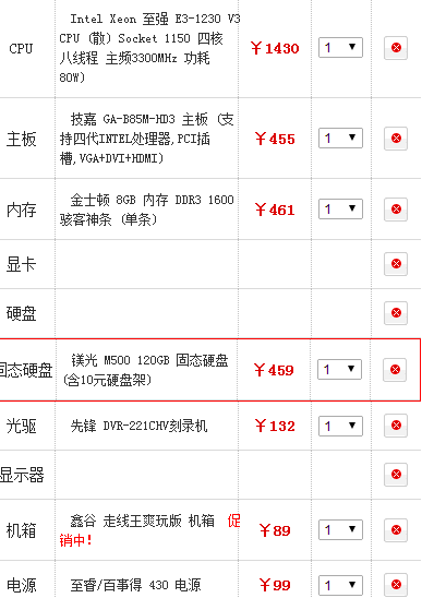 这个配置大约3100元,CPU绝对够猛了,这几个软件主要靠CPU,如果觉得内存不够大的话自己再加上去,这点儿预算就不够用了。固态硬盘方面截图用的这个网站没有浦科特M6S,这个更好,128G版的大约480元。显卡的话淘宝买一个GT210用来当亮机卡,不超过30块钱,E3没有核显这种鸡肋的东西,散热器用九州风神(DEEPCOOL) 冰凌 MINI 旗舰双刃版,同一个问题不要发两遍,会被我发现的~~去中关村别被坑啊!