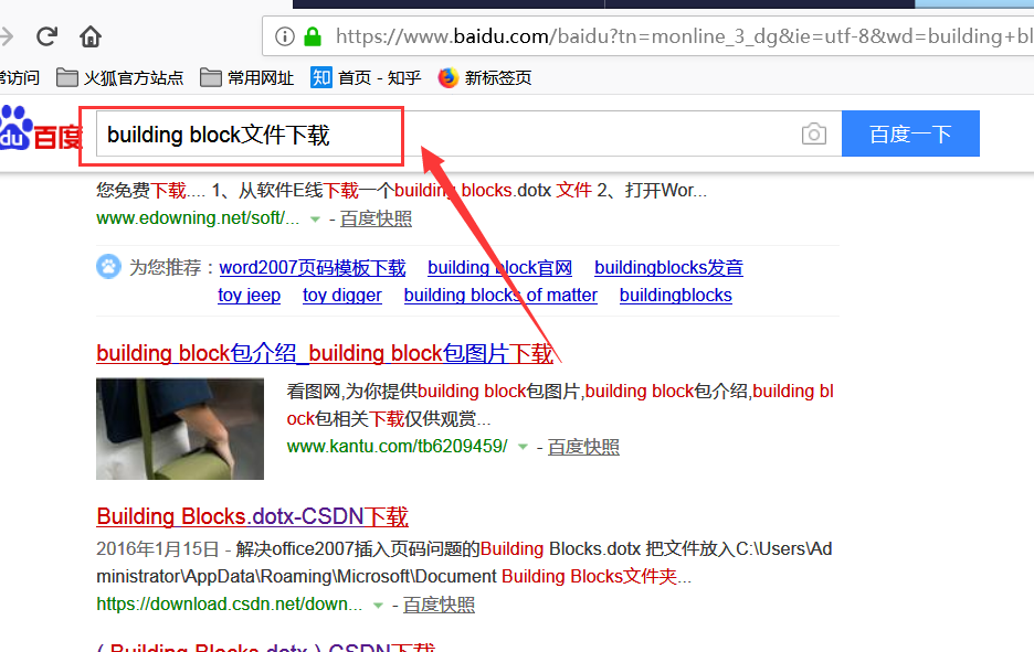 1、在百度搜索【buildingblock文件下载】,然后进入任意网址下载这个文件。