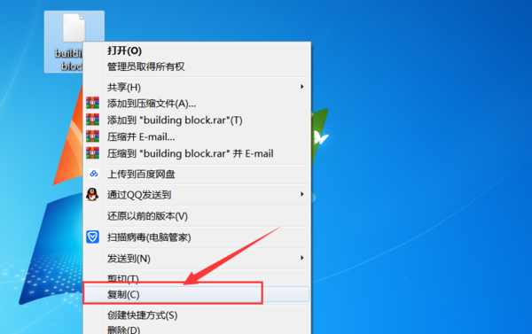 3、解压后右键单击buildingblock文件,选择【复制】
