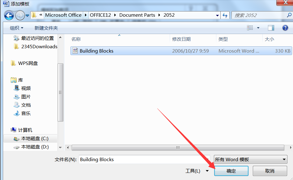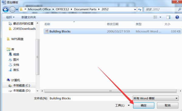 9、这时候会弹出一个路径选择框,对照第4步的路径一级级找到buildingblock文件,然后点击确认,设置完以后就可以正常插入页码了。