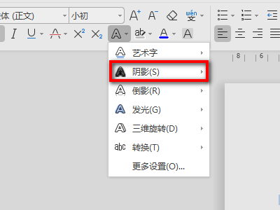 4.在新弹出的页面中找到上方阴影按钮,鼠标左键点击阴影按钮到下一页面中。