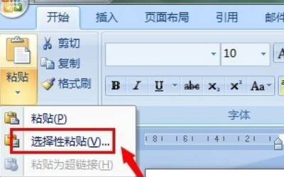 3、接着点击“粘贴”-》“选择性粘贴”项。