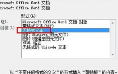 4、并在弹出的窗口中,选择“无格式文件”项,点击“确定”完成粘贴操作。