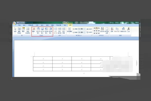 3、如果想要在当前表格中插入行或列,只需要将光标放在想要插入行或列的位置,然后点击“布局”选项卡中的“行和列”区域中相应的内容即可;