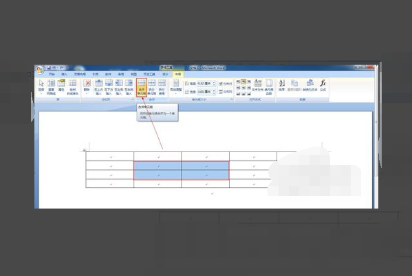 4、如果想要合并当前表格中某些单元格,只需要将光标放在想要插入行或列的位置,然后点击“布局”选项卡中的“合并单元格即可。