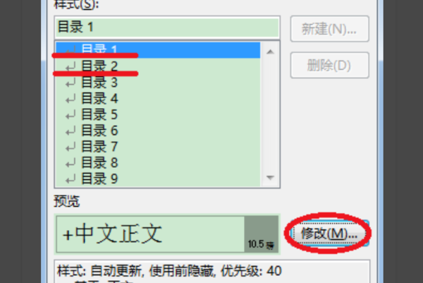 目录也有样式,标题1对应的目录样式叫目录1,标题2对应的是目录2,余类推。