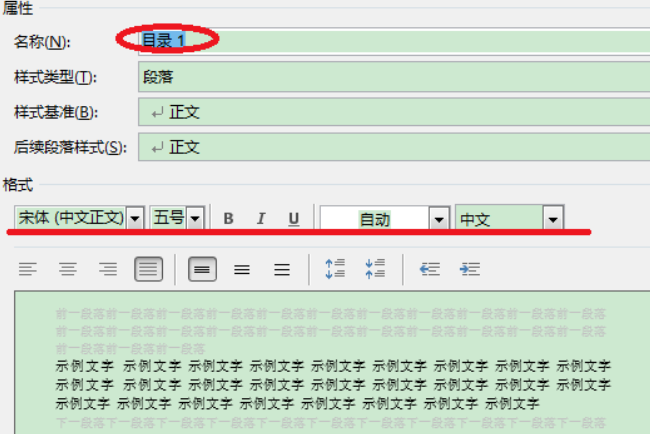 找到目录1样式,光标移到样式上,点击样式右边的下拉箭头,选择第一条命令“选择所有n实例”,这时将选中使用该样式的所有目录行,之后就可以按需要修改字体格式