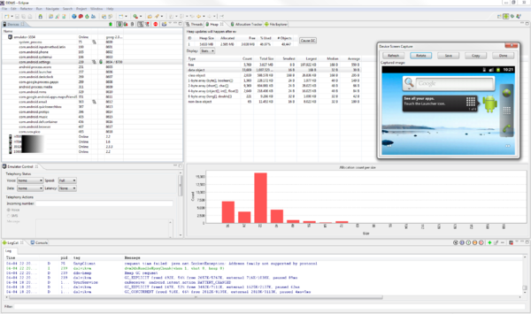 DDMS 的全称是Dalvik Debug Monitor Service,它提供例如:为测试设备截屏,针对特定的进程查看正在运行的线程以及堆信息、Logcat、广播状态信息、模拟电话呼叫、接收SMS、虚拟地理坐标等等
