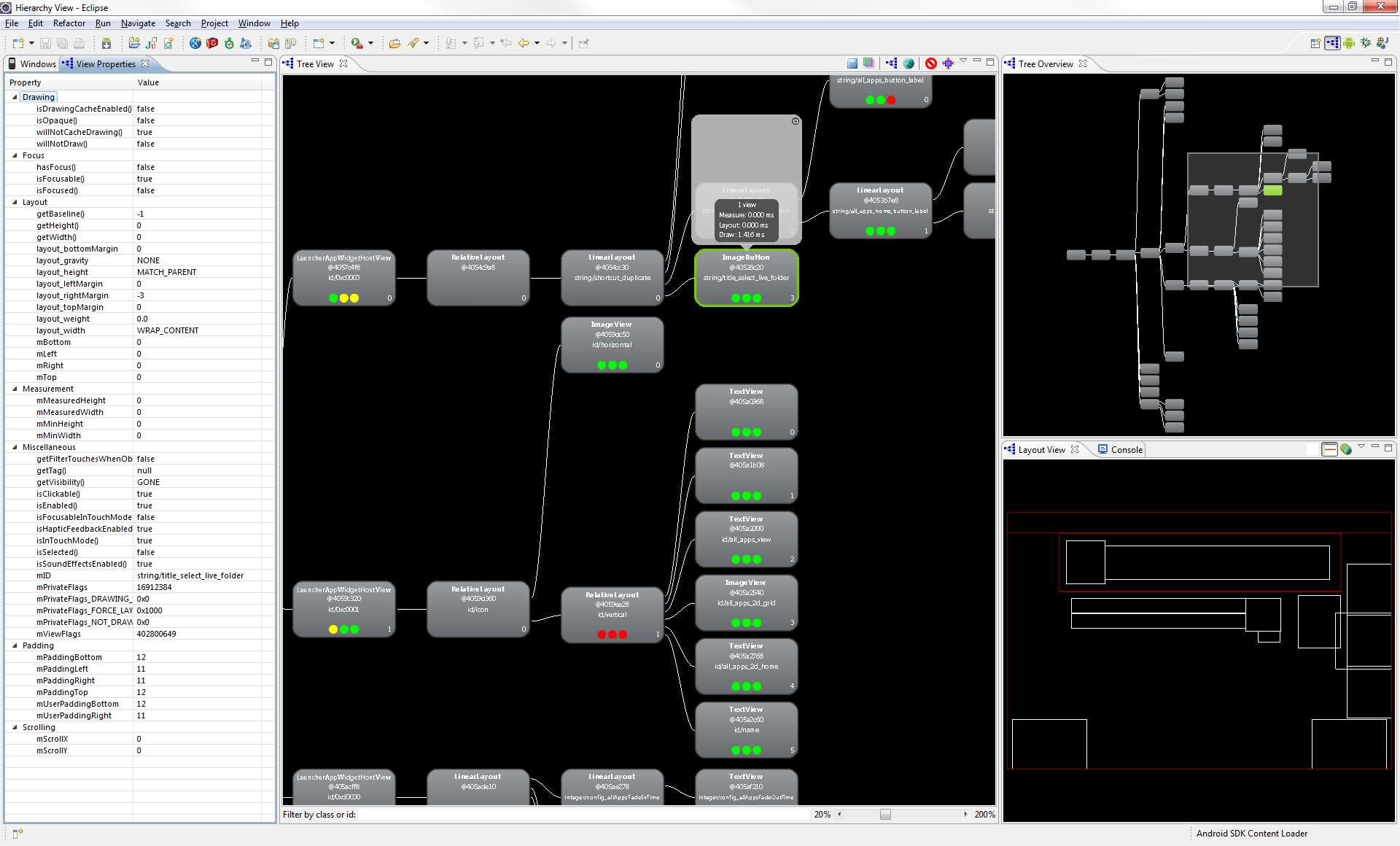 Hierarchy Viewer是随AndroidSDK发布的工具,位置在tools文件夹下,名为hierarchyviewer.bat。它是Android自带的非常有用而且使用简单的工具,可以帮助更好地检视和设计用户界面(UI),绝对是UI检视的利器