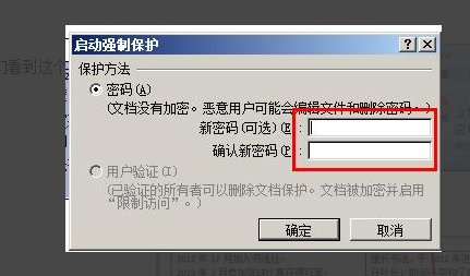 5、在打开的对话框中输入密码后点击“确定”。然后保存文档,这时候Word文档就不能选择、复制、粘贴等操作了。