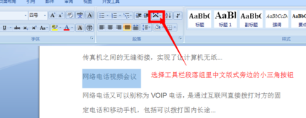 3、选择工具栏段落组里中文版式旁边的小三角按钮;