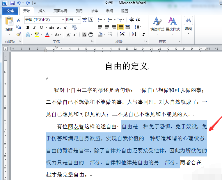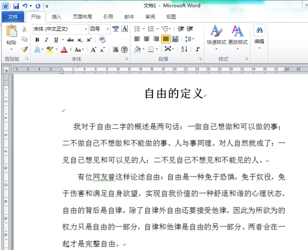 1、启动Microsoft Word 2010程序,为了让效果更明显,在文档中至少输入两行以上的内容。