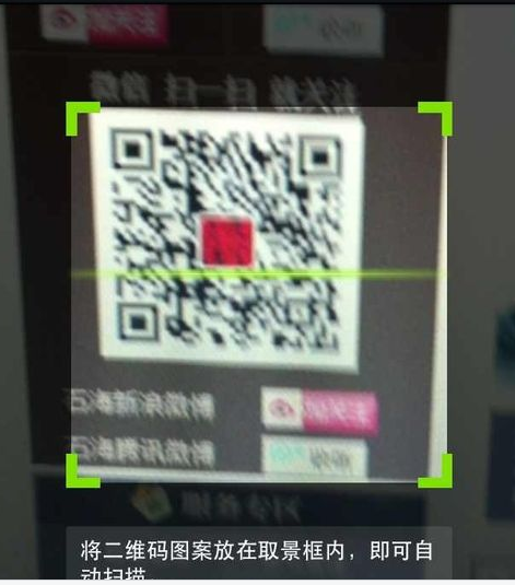 2、然后出来的方框对准二维码开始扫描,扫描成功后会有提示。