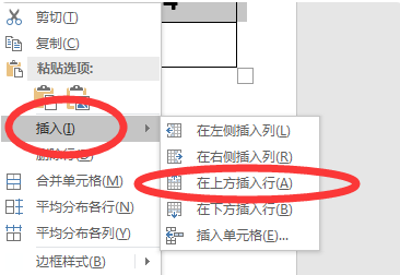 在WORD中的表格中怎样在表格的上面增加一行空行