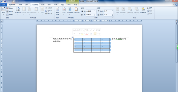 3、选中制作的小表格,右击,在弹出的快捷菜单中选择“表格属性”。