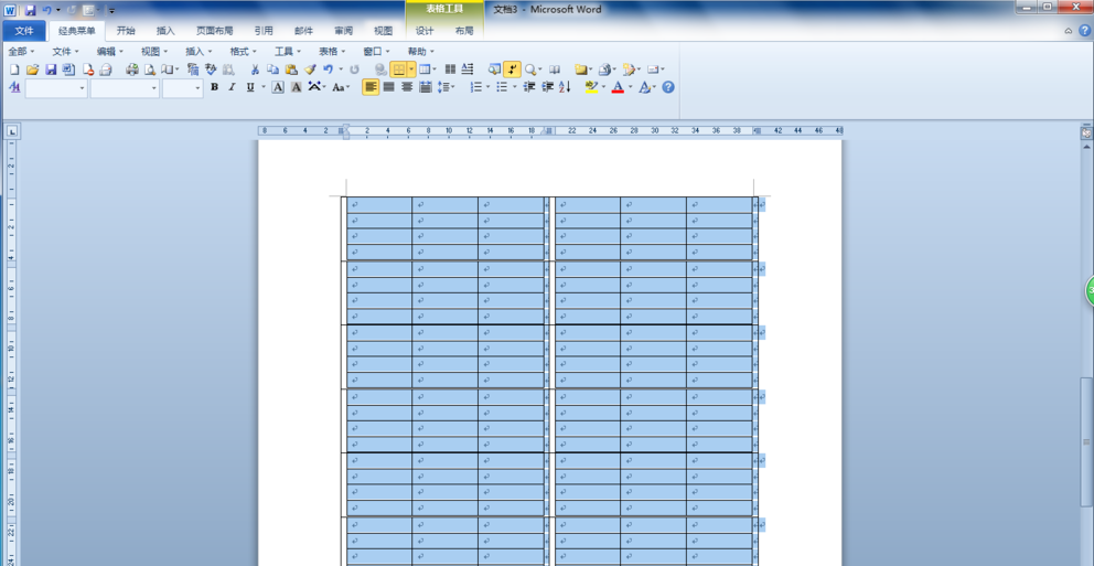 6、绘制一个两列多行的表格全选表格,右击后粘贴表格就嵌套进去了,嵌套的表格上面的空行也消失了。