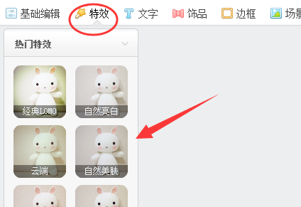 2、在“美化图片”选项中,点击“特效”,选择需要的特效效果。