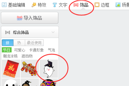 5、点击“饰品”,选择需要加入的贴图。